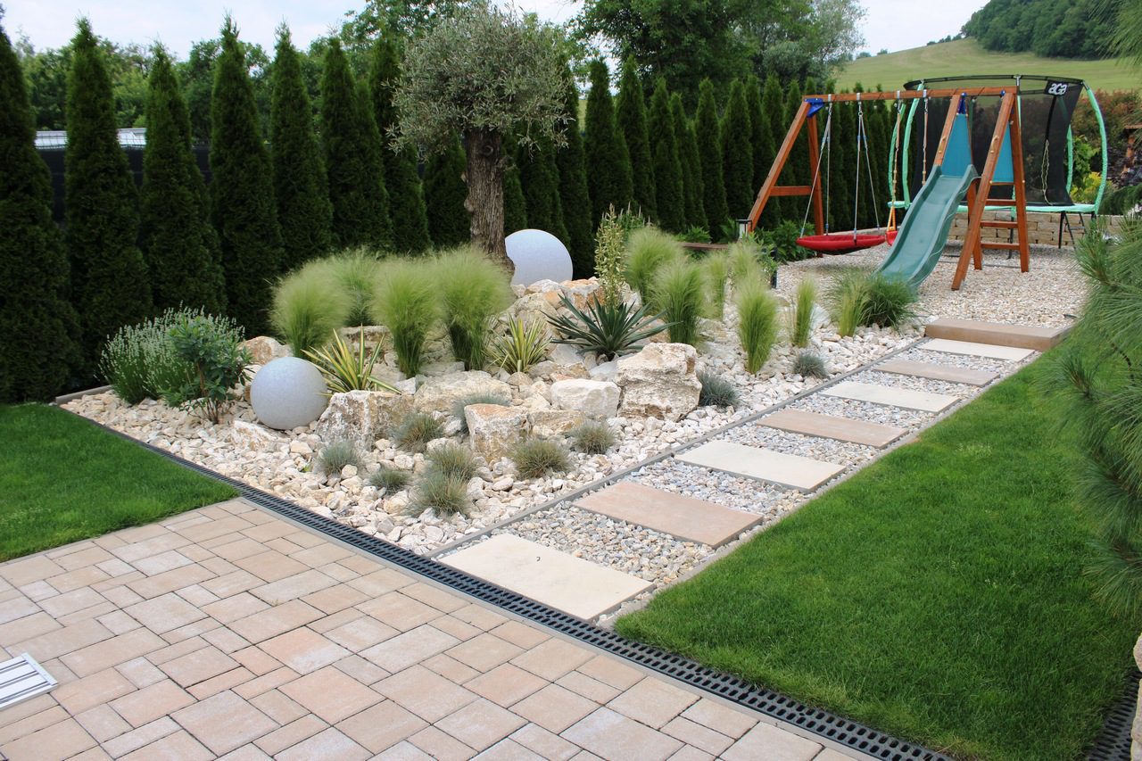 Celý pozemok je potrebné vopred rozdeliť na aktívnu časť pre šport alebo detské hry, úžitkovú časť, v ktorej budete pestovať zeleninu alebo bylinky, a na relaxačné zóny ako je terasa, ohnisko, bazén alebo altánok.