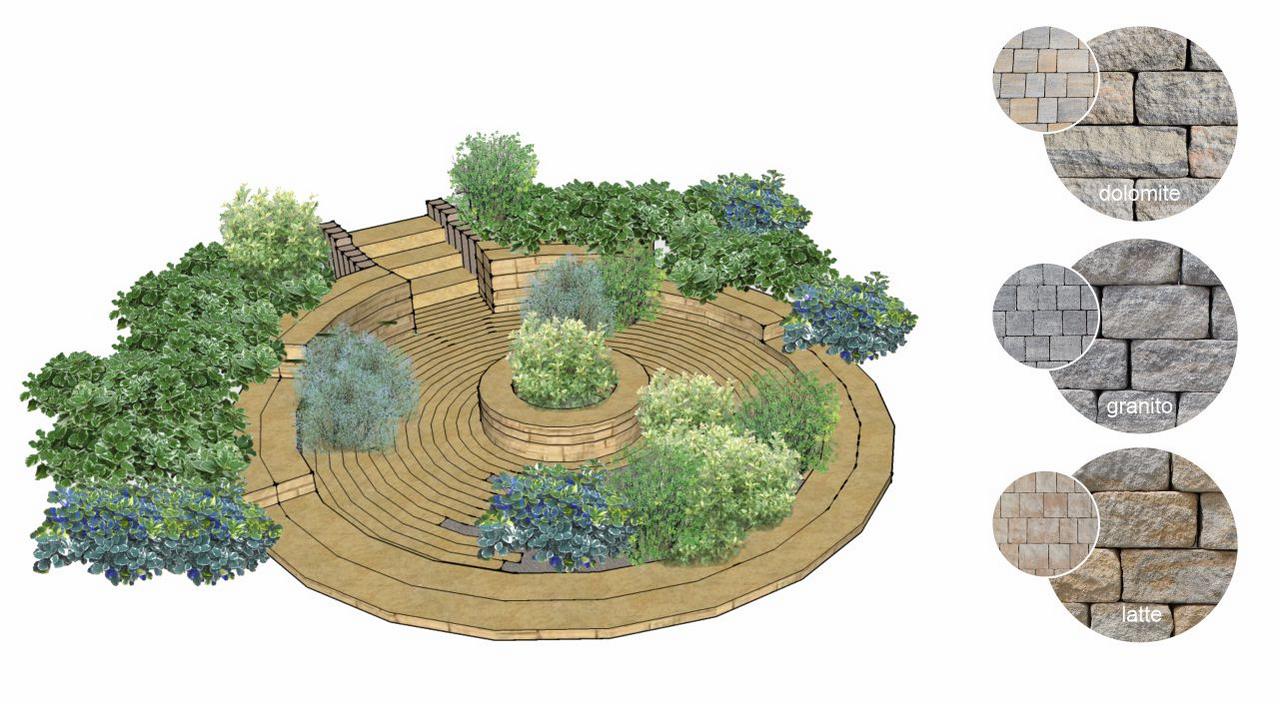 Pre budovanie bylinkových špirál, vyvýšených záhonov alebo odstupňovaných bylinkových záhonov sú ideálnou voľbou plné betónové bloky Arcadia. Technológia štiepania a následného otĺkania dodáva blokom Arcadia nepravidelný tvar a vzhľad veľmi blízky prírodnému kameňu. V tejto produktovej rade nájdete aj palisády Arcadia, ktoré majú podobný dizajn, no iný tvar. Farebné odtiene dolomite, granito alebo pieskovec pri oboch produktoch výborne ladia s organickými tvarmi rastlín a pôsobia v záhrade veľmi prirodzene.
