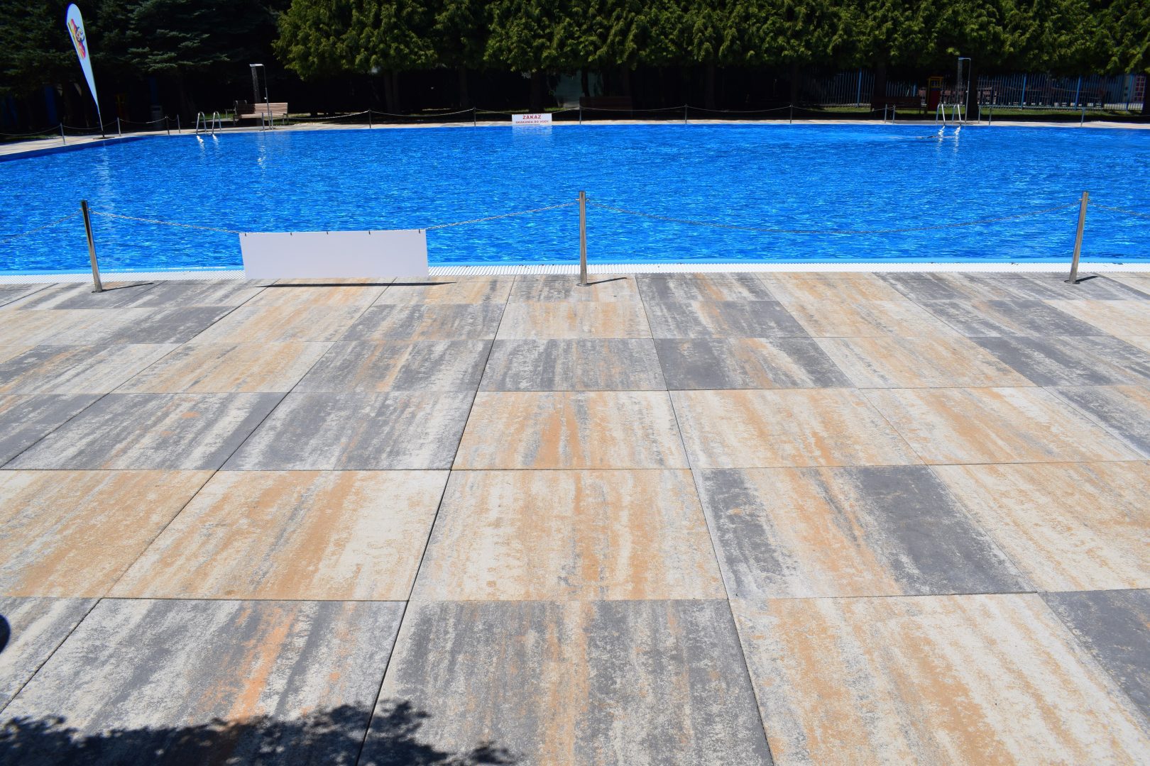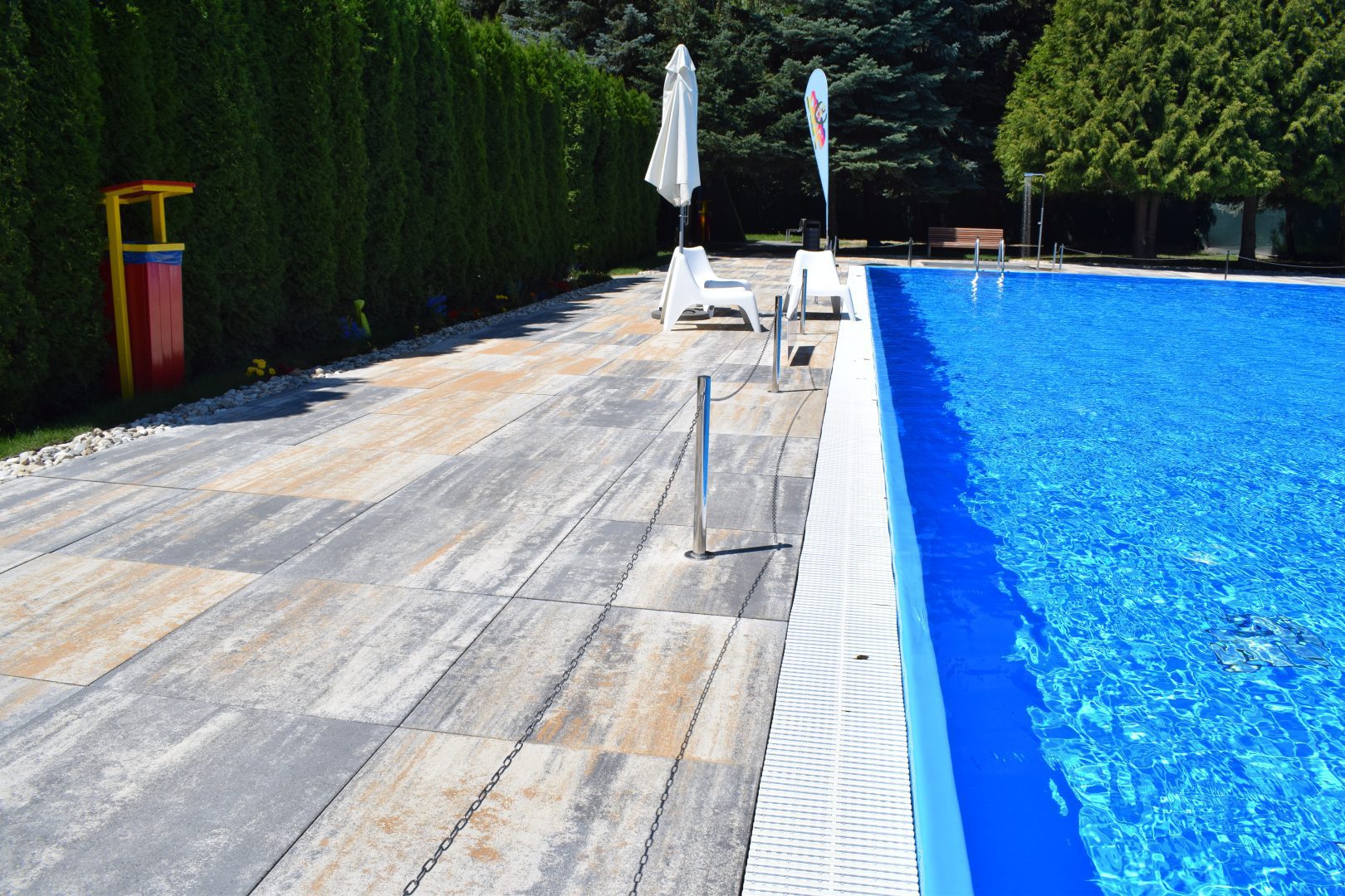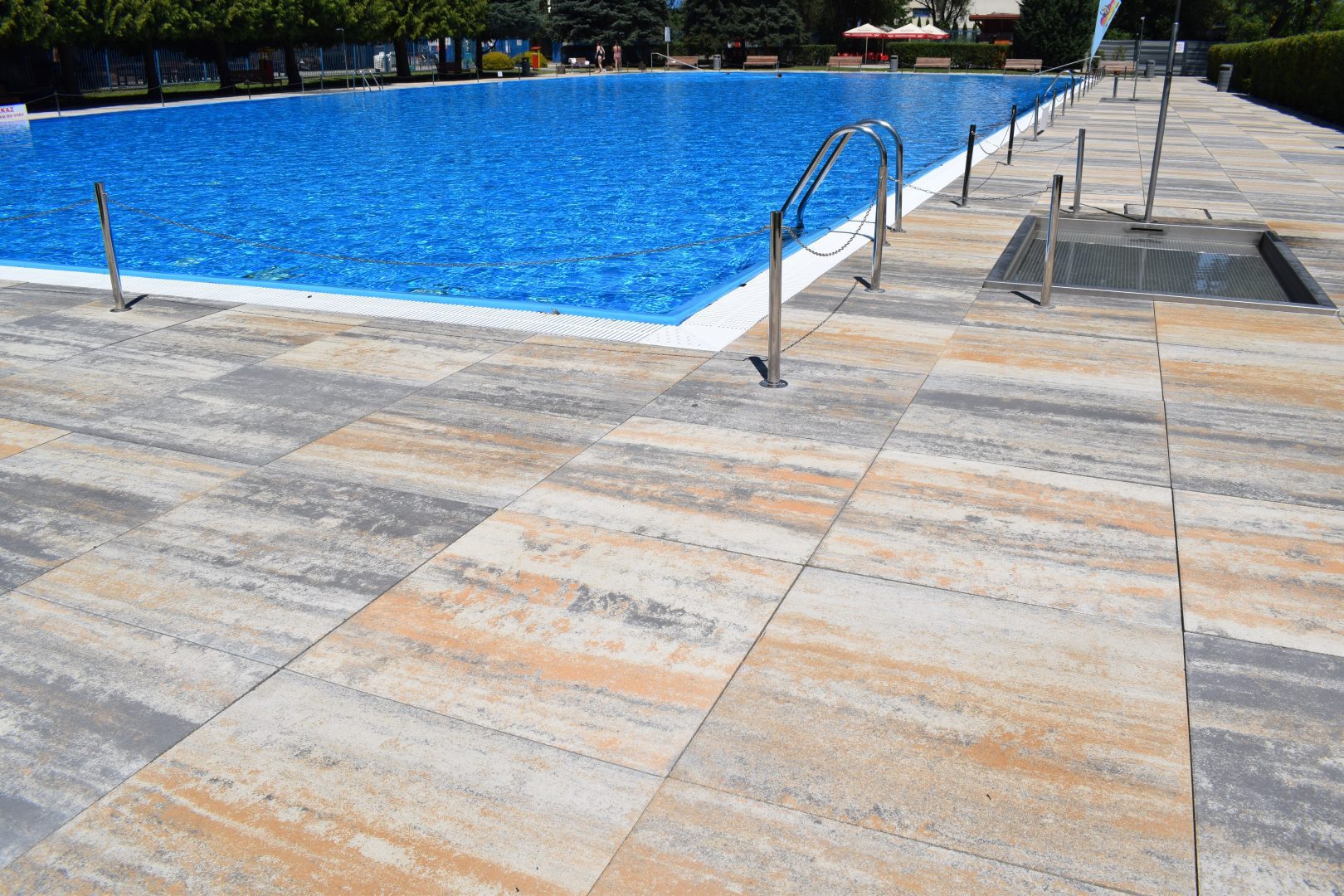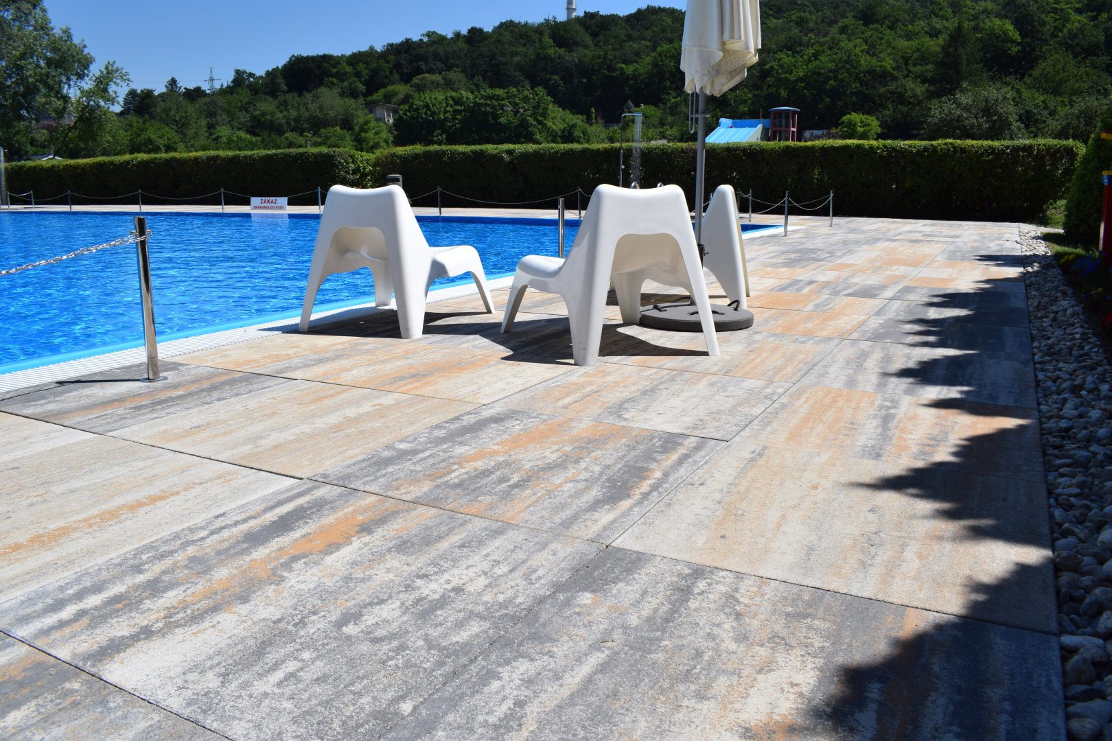 Vo všeobecnosti by dlažba okolo bazéna nemala byť príliš štruktúrovaná alebo s reliéfom, aby na nej nestála voda.